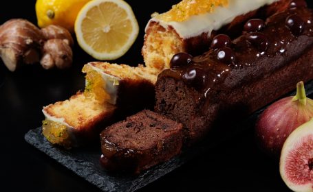 ○レモンとしょうがのパウンドケーキ・・・サトウキビから作られるフランス産の砂糖カソナードとバターをふんだんに使い、香り豊かに焼き上げました。